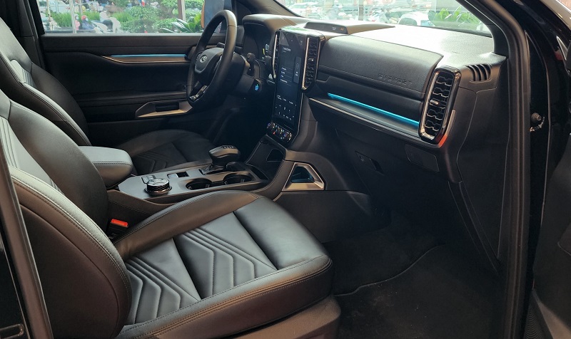 Ngoài ra còn có tiêu chuẩn là cửa sau chỉnh điện rảnh tay của Everest Sport, ghế trước thông gió, chỉnh điện 10 hướng và chức năng ghi nhớ cho ghế lái và chỉnh điện 8 hướng cho hành khách phía trước, trong khi bản Platinum bổ sung thêm hệ thống chiếu sáng khu vực và xung quanh, 360- camera độ và hỗ trợ đỗ xe chủ động (tay và chân) như đã thấy trên Ranger.