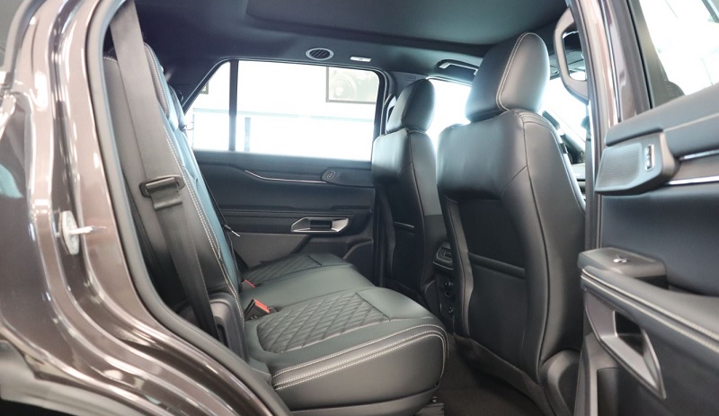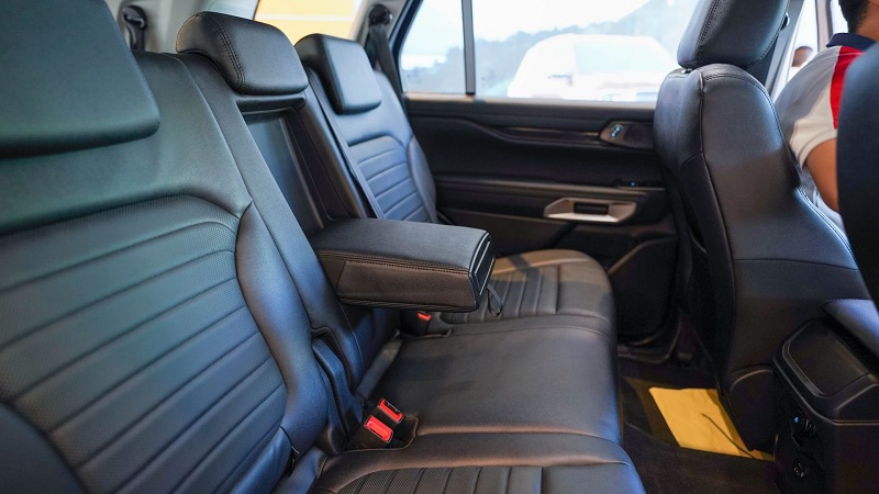Hàng ghế thứ ba của Ford Everest được thiết kế rộng hơn, thêm khoảng trống để chân, ghế ngồi cải tiến hơn và dễ dàng lên xuống. Các họng gió điều hòa được bố trí trên cao giúp không khí trong xe luôn được lưu thông, nhờ vậy hành khách phía sau luôn thấy mát mẻ, dễ chịu. Khả năng cách âm vượt trội mang lại không gian yên tĩnh cho việc trò chuyện ở trên xe. Hệ thống túi khí rèm hai bên là trang bị tiêu chuẩn.