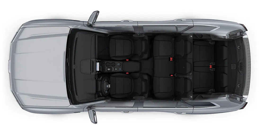 Ở phía sau, diện tích chở hàng tăng lên ở các chế độ hai chỗ, năm và bảy chỗ, từ tối thiểu 259 lít phía sau hàng ghế sau lên tối đa 1823 lít phía sau hàng ghế trước,