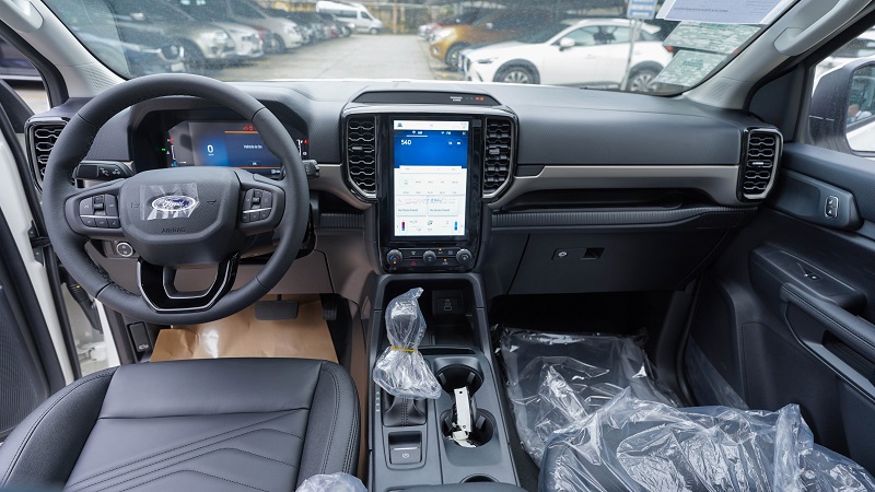 Bên trong, Everest mới có bước tiến vượt bậc về kích thước, không gian, thiết kế và chất lượng vật liệu, nổi bật về mặt công nghệ là màn hình cảm ứng thông tin giải trí trung tâm 12,0 inch kiểu chân dung lớn với hệ điều hành SYNC 4A1 – tạo nên sự rõ nét. , giao diện ngắn gọn, nhanh chóng và trực quan cao – cùng với cụm đồng hồ kỹ thuật số 12,4 inch mới sang trọng được chia sẻ với Ranger Raptor và cuối cùng mang đến tacho toàn thời gian.