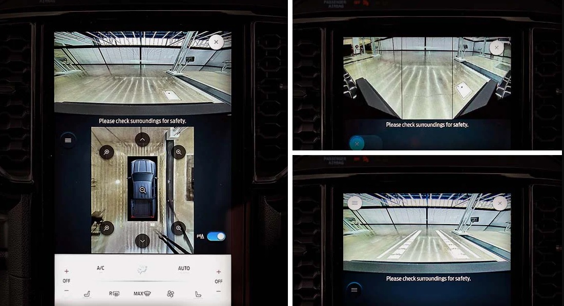 Màn hình dành riêng cho chế độ off-road cung cấp tính năng chia màn hình để hiển thị đồng thời hình ảnh từ camera phía trước, kết hợp cùng màn hình kỹ thuật số hiển thị độ nghiêng và dốc của xe. Người lái có thể thao tác kích hoạt các chế độ off-road khác nhau trên màn hình, bao gồm hệ thống kiểm soát đổ đèo và khóa vi sai.