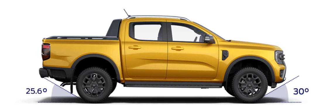 Ford Ranger thế hệ mới được thiết kế tăng chiều dài cơ sở và chiều rộng cơ sở thêm (50mm) – giúp các phần vòm bánh xe vồng to, kết hợp các đường dập nổi cứng cáp chạy dọc thân xe, Chiều rộng thân xe được tăng thêm để xe thêm chắc chắn và linh hoạt, chiều dài cơ sở cũng được tăng thêm để chiếc xe thêm cân bằng với phần đầu xe, giúp chiếc xe luôn trong tư thế sẵn sàng chinh phục mọi địa hình.