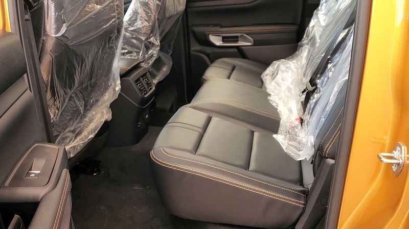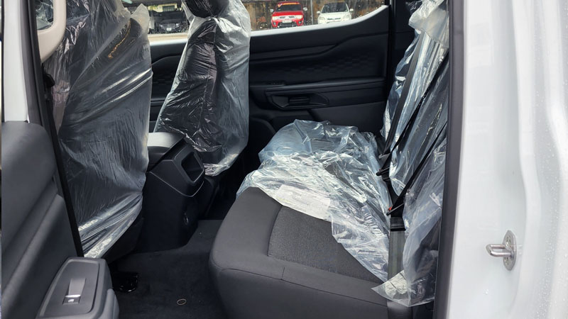 Hàng ghế sau Ford Ranger được đánh giá khả thoải mái. Xe trang bị đầy đủ tựa đầu ở cả 3 vị trí và bệ tỳ tay tích hợp chỗ để cốc. Tuy nhiên, tựa lưng ghế vẫn khá đứng. Đi đường dài dễ có cảm giác hơi gò bó. Ở phương diện này, trong phân khúc ô tô bán tải, Mitsubishi Triton luôn được đánh giá cao nhờ thiết kế J-line.