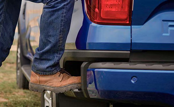 Ford Ranger Bậc lên xuống phía sauFord Ranger thế hệ mới được thiết kế bậc lên thùng xe ở phía sau và hai bên hông xe rất thuận tiện cho người sử dụng bước lên thùng xe một cách dễ dàng để xếp và dỡ hàng hoá. Không cần phải đứng lên bánh xe phía sau để tiếp cận với các đồ vật bê trong thùng xe. |