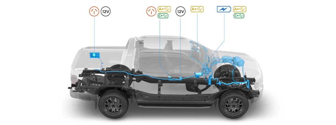 Ford Ranger Thế Hệ Mới có khả năng cung cấp nguồn điện cho các thiết bị điện tử cầm tay hay thiết bị điện khác như máy tính xách tay từ các ổ cắm ngay trên thùng chở hàng.