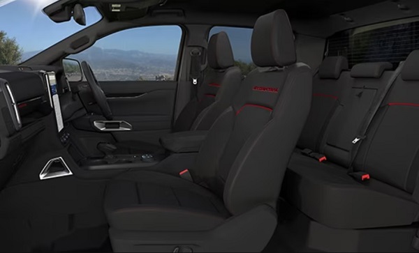 Tuy là dòng xe bán tải nhưng Ford Ranger luôn tập trung nhiều vào sự thoải mái ở khoang lái. Ghế Ranger Sport, Wildtrak được bọc da vinyl. Bản Ranger Stomtrak sử dụng ghế bọc da vinyl hoặc da lộn. Các bản thấp dùng ghế nỉ. Stormtrak tiếp tục dùng 2 tông màu đỏ đen để tạo điểm nhấn. Đồng thời thêu chữ Stormtrak nổi bật ngay tựa lưng ghế.