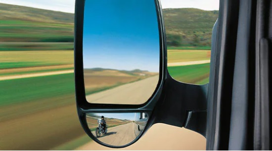 Ford Transit mới được trang bị gương chiếu hậu bên ngoài thiết kế lớn với tầm quan sát rộng và điều khiển điện, còn được tích hợp gương cầu tăng tầm quan sát.